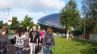 An unserem zweiten Tag in Bremen trafen wir uns alle, mehr oder weniger ausgeschlafen, um 7:45 Uhr im Speisesaal zum Frühstück. Nach dem Frühstück nahmen wir uns noch alle etwas zum Essen mit und packten unsere Taschen, denn wir wollten um 9:45 Uhr aufbrechen. Als unsere Klasse sich in der Lobby versammelt hatte, machten wir uns auf den Weg Straßenbahnhaltestelle, von wo aus wir zum "Universum" fuhren. Das "Universum" ist ein großes Museum, in dem man viele spannende Experimente und Versuche zu den Themenbereichen Erde, Mensch und Kosmos machen kann. Wir hatten ungefähr 3 Stunden Zeit, um das Museum und die Außenanlagen zu erkunden, danach trafen wir uns im Museumsrestaurant wieder, wo wir alle etwas aßen und uns lange aufhielten, denn draußen regnete es und unser nächster Programmpunkt war erst am späteren Nachmittag. Als es Zeit wurde, gingen wir zur nächsten Straßenbahnhaltestelle und stiegen in die S-Bahn ein, die uns zum Weser Stadion brachte. Dort zeigte uns ein Führer das ganze Stadion inklusive den VIP-Bereichen, dem Pressekonferenzraum und der Gästekabine. Nach der interessanten Führung, hatten wir noch etwas Zeit, um uns das "Wuseum" anzuschauen, in welchem auch die legendäre Papierkugel zu sehen ist, die Werder Bremen in einem Spiel 2009 gegen den Hamburger SV den Sieg brachte. Als wir fertig waren, stiegen wir wieder in die Straßenbahn, die uns zurück zu unserer Jugendherberge brachte. Vor dem Abendessen um 18:15 Uhr hatten wir noch Freizeit, die wir bei dem guten Wetter dazu nutzten, Spaziergänge zu machen oder uns ans Ufer der Weser zu setzen, die unmittelbar vor unserer Herberge floss. Nach dem Essen hatten wir dafür nochmal Zeit, bis wir uns um 20:00 Uhr in der Lobby trafen. Wir gingen zusammen in einen Raum der Jugendherberge, wo wir uns den Film "Fack ju Goethe" anschauten. Nach dem Film war es beinahe schon 22:00 Uhr und somit Nachtruhe, aber das hielt uns nicht davon ab, noch bis weit nach Mitternacht wach zu bleiben.