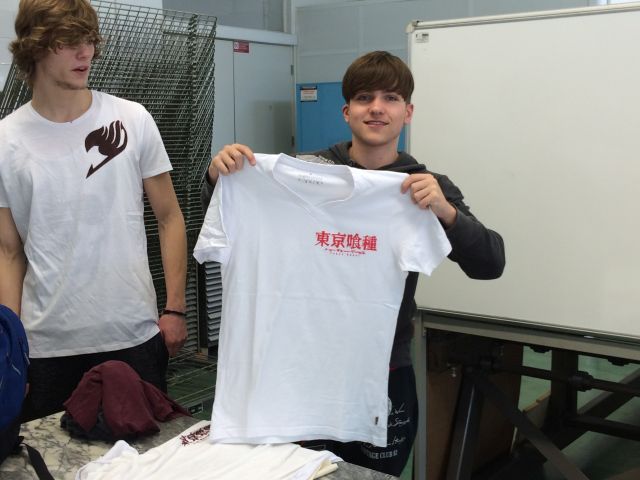 An der Universität ESAD in Caldas hatten wir die Möglichkeit unterschiedliche Druckverfahren kennenzulernen. Wir starteten mit dem Bedrucken von mitgebrachten T-Shirts und Stoffbeuteln, wozu wir unser eigenes Motiv entwerfen durften. Per Siebdruckverfahren druckten wir diese dann auf die Stoffe. Das Hauptprojekt war ein sieben Meter langer Druck, der aus einzelnen Teildrucken zu einer Art „Panoramadruck“ zusammengesetzt wurde. Die Teildrucke bestanden aus Motiven der Stadt Hilchenbach, die in Gruppenarbeit wiederum per Siebdruckverfahren mit schwarzer Druckfarbe auf vorbearbeitete Papiere gedruckt wurden. Die Vorarbeit bestand darin, auf diese Papiere grüne und gelbe Farbflächen aufzuwalzen, die den Hintergrund der Stadtmotive darstellen sollten. Die Farben spiegeln die grüne Umgebung und im weiteren Sinne die „ausstrahlende“ Wärme unserer Stadt Hilchenbach wider, weshalb wir unserer Projektarbeit auch den Titel „Mein Ort und meine Heimat“ vergaben.