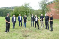 Nach Abschluss der Feierstunde im Gebrüder-Busch-Theater trafen sich dazu etliche der Teilnehmer auf dem Gelände des Allenbacher Gymnasiums, um gemeinsam mit den Früchtchen aktiv zu werden. Dazu hatte die Stadtverwaltung 10 prächtige junge Apfelbäume gestiftet, die nun eine Pflanzung aus 2017 ergänzen.