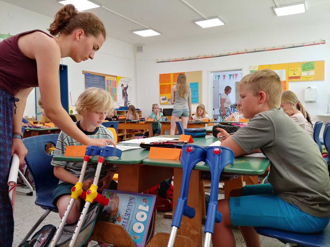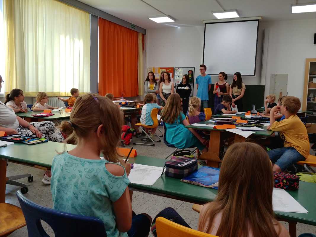 Für die ganz schnellen hatten wir ein kleines Schmankerl aus einer der kommenden Boxen mitgebracht, die sich derzeit in der Entwicklung befinden. Aus dem Thema „Wie die Bilder laufen lernten“ hatten wir eine Bastelanleitung für ein Thaumatrop und ein Daumenkino dabei. Die Kinder der Klassen 3 und 4 arbeiteten eifrig und sehr flott und hatten im Anschluss noch eine Menge Fragen an uns. Das Abschied nehmen fiel schwer, wir wurden umarmt und geherzt und das damit ausgedrückte Lob können wir euch, den „Florenburgern“ nur wieder geben. Wir haben uns sehr wohl gefühlt und wünschen euch schon an dieser Stelle schöne Sommerferien und freuen uns auf ein vielleicht baldiges Wiedersehen.