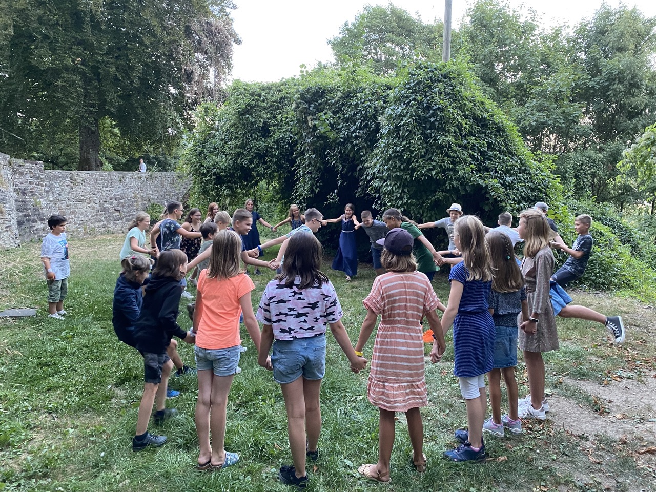 Nach dem Abendessen gab es eine Chaosrallye: Die Schüler:innen mussten Zettel mit Zahlen suchen und dann eine Aufgabe in ihrer Gruppe erledigen; 3-6 Kinder durften in der Gruppe sein. Eine Aufgabe war zum Beispiel ‚,Sing ein Schlaflied mit einer Zahnbürste als Mikrofon“.