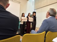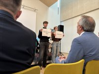Was in der Klasse 10a im vergangenen Schuljahr erarbeitet wurde, konnte nun tatsächlich Teil der Erinnerungskultur werden. Schülerinnen und Schüler aus den Jahrgangsstufen EF und Q1 trugen die erarbeiteten Beiträge im Rahmen der von der Stadt Hilchenbach am 3. Oktober organisierten Feierstunde im kmd Dahlbruch vor. Musikalisch wurde die Veranstaltung vom Akkordeon-Orchester Siegerland bereichert, Bürgermeister Kaioglidis führte durch das Programm. Den Festvortrag mit eindrücklichen Beispielen hielt Rüdiger Löhl, ein gebürtiger Siegerländer, der seit Jahren als Unternehmer in Thüringen tätig ist. Es handelte sich um eine sehr angemessene Festveranstaltung, der auch ein ungeplanter Feuerfehlalarm keinen Abbruch tun konnte.